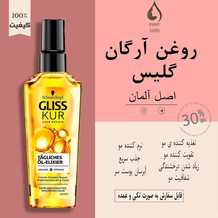روغن آرگان گلیس اورجینال«طرح جدید» ۷۵ میلی لیتر